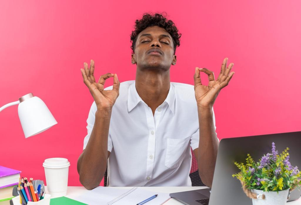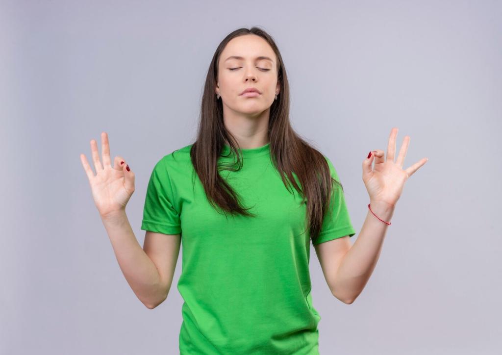 Setz dich aufrecht, zieh die Krone des Kopfes nach oben und neige den Kopf sanft zur Seite. Atme tief, schiebe die gegenüberliegende Hand Richtung Boden. Spüre, wie Wärme entlang des Trapezmuskels aufsteigt. Drei langsame Atemzüge pro Seite, dann kurz nachspüren und lächeln.